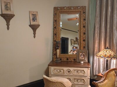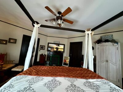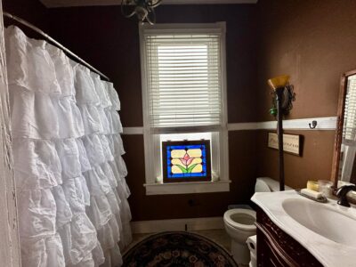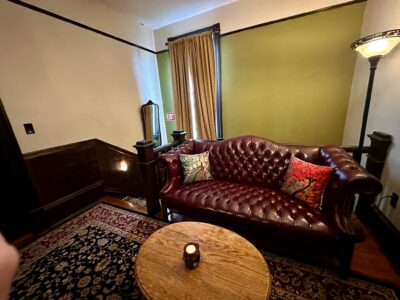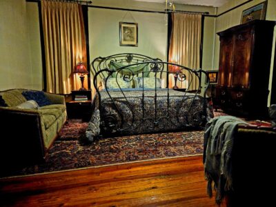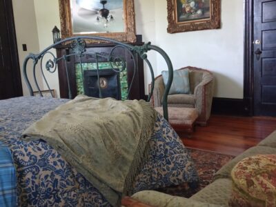 Located on the main level, this suite provides easy access and generous living space, making it ideal for families, longer visits, or guests who prefer stair-free entry. Tall ceilings, original woodwork, and preserved architectural details reflect the home’s historic character, while comfortable furnishings and thoughtful touches create a relaxed, livable atmosphere.