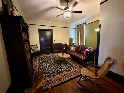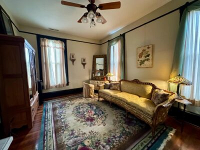 Each space carries its own personality while honoring the character of the home — tall ceilings, original woodwork, and welcoming rooms designed for rest. Whether you’re traveling solo, as a couple, or with family, you’ll find a stay that fits.